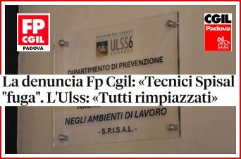Emorragia di personale allo Spisal dell’Ulss 6, la Fp Cgil Padova denuncia: “Dimissioni causate da un ambiente insostenibile nel totale silenzio della Regione Veneto”