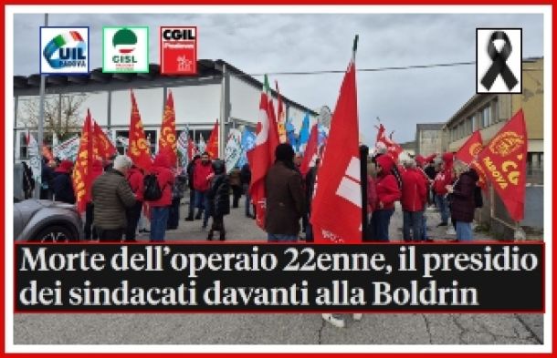 La mobilitazione unitaria dei sindacati padovani, svoltasi davanti ai cancelli della ditta dove è avvenuta la tragedia, ha voluto dare una risposta forte e visibile di fronte all'ennesima tragedia sul lavoro che ha colpito un giovane di soli 22 anni. Rappresentanti delle federazioni ...