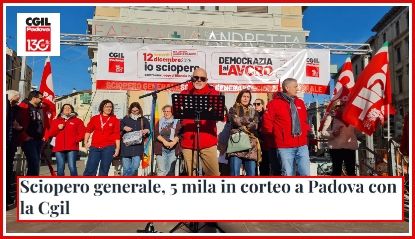 Erano in migliaia - chi dice 5000, chi dice 4000: poco importa, erano comunque in tante e in tanti - alla manifestazione organizzata ieri, venerdì 12 dicembre, dalla Cgil a Padova, nell'ambito dello Sciopero Generale proclamato a livello nazionale dal sindacato di Maurizio Landini contro la Legge...