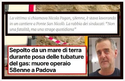 Ancora una vittima sul lavoro in provincia di Padova. A perire, in un cantiere a Ponte San Nicolò, un operaio di 58 anni, Nicola Pagan di Piove di Sacco e dipendente della ditta edile Romanato di Bruggine, travolto da un cumulo di detriti mentre lavorava all'interno di uno scavo per un intervento...