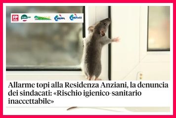 La denuncia delle Segreterie Provinciali di Fp Cgil, Cisl Fp, Cisl Fisascat, Uil Fpl e Uil TuCS di Padova: "Topi presso la 'Residenza Villaggio Anziani tra noi' di Solesino (PD): elevato rischio igienico-sanitario per ospiti e personale"