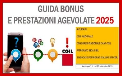 Anche se il giudizio della Cgil sui bonus e sulle prestazioni agevolate promosse dagli ultimi governi, e in particolare dal Governo Meloni, è tendenzialmente negativo (sia per questioni di metodo, ossia mancanza di confronto, che per questioni di merito, ossia la natura non strutturale, spesso discriminatoria e inefficace delle misure) crediamo di fare una cosa utile nel pubblicare - la trovate in allegato - la guida sui bonus 2025, un utile strumento di lavoro che vuole essere un supporto pratico rispetto ai numerosi bonus disponibili.