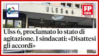 Descrizione allegato: Gli articoli di Mattino, Gazzettino e Corriere Veneto sulla vertenza dei dipendenti dell'Ulss 6 Euganea