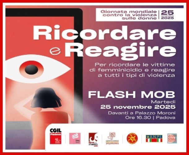 In occasione della Giornata Mondiale contro la Violenza sulle Donne del 25 novembre, il Coordinamento Donne della Cgil di Padova ha rinnovato il suo impegno nella sensibilizzazione e nella lotta contro ogni forma di violenza di genere, organizzando un Flash Mob per "Ricordare e Reagire". L'appuntamento, fissato alle 16.30 di martedì 25 novembre 2025, davanti a Palazzo Moroni, sede del Comune di Padova, ha visto una discreta partecipazione e ha destato la curiosità dei numerosi passanti in giro per lo shopping nelle vie del centro.