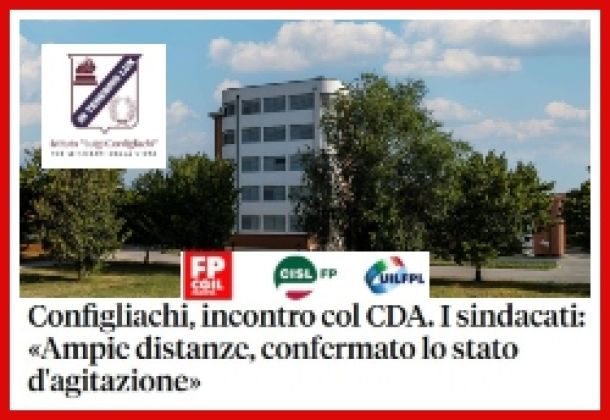 Lunedì 13 ottobre, si è svolto l’incontro tra i rappresentanti sindacali delle Segreterie Provinciali di Cgil Cisl e Uil e la dirigenza dell’Ente IPAB Configliachi. “Si è trattato di un incontro – recita una nota diffusa dalle tre Confederazioni – che, a nostro avviso, ha messo in luce una situazione di forte criticità gestionale e organizzativa, con ripercussioni significative sulle condizioni di lavoro e sulla qualità dei servizi erogati agli ospiti. Un incontro durante il quale ci siamo confrontati con il Presidente del Consiglio di Amministrazione, tutto il CDA, il Direttore Alessandro...