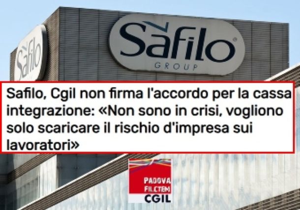 La Filctem CGIL di Padova ha annunciato la sua decisione di non firmare l'accordo per la cassa integrazione richiesta da Safilo per il periodo che va dal 3 ottobre al 28 dicembre 2025. Una scelta emersa ieri (mercoledì, 24 settembre), durante il cosiddetto “esame congiunto” tra l’azienda e i sindacati – vale a dire quel confronto, obbligatorio per legge, finalizzato ad analizzare le motivazioni che hanno portato alla richiesta de...