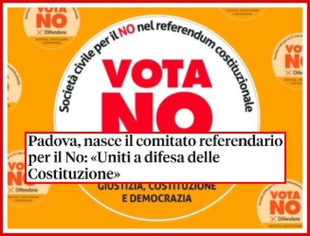 Si è costituito ufficialmente a Padova il “Comitato della società civile per il no nel referendum costituzionale”, una coalizione ampia e trasversale che unisce numerose realtà associative, sindacali e politiche del territorio. La nascita del Comitato è avvenuta durante una partecipata riunione di coordinamento che ha visto la presenza di oltre cinquanta rappresentanti di organizzazioni locali, a testimonianza di una risposta pronta e corale della società civile padovana all'appello nazionale per la difesa dei valori democratici e costituzionali. Un incontro che di fatto costituisce anche l...