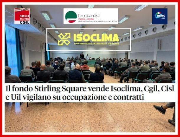 Come Organizzazioni Sindacali prendiamo atto che, a seguito delle voci già circolate, è stata resa ufficiale l’operazione societaria che prevede il passaggio di ISOCLIMA dal fondo STIRLING SQUARE al fondo italiano di investimento SGR e THE EQUITY CLUB .