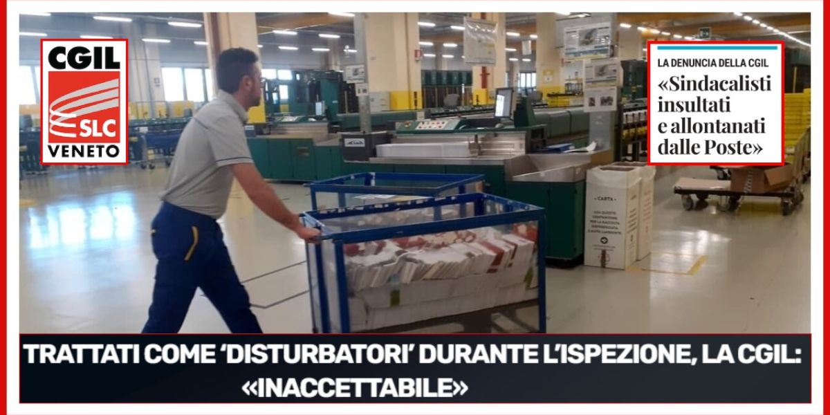 • Poste Italiane, la Slc Cgil Veneto denuncia: "Gravi intimidazioni contro due nostri sindacalisti durante un'ispezione al Centro di Smistamento di Poste a Padova"