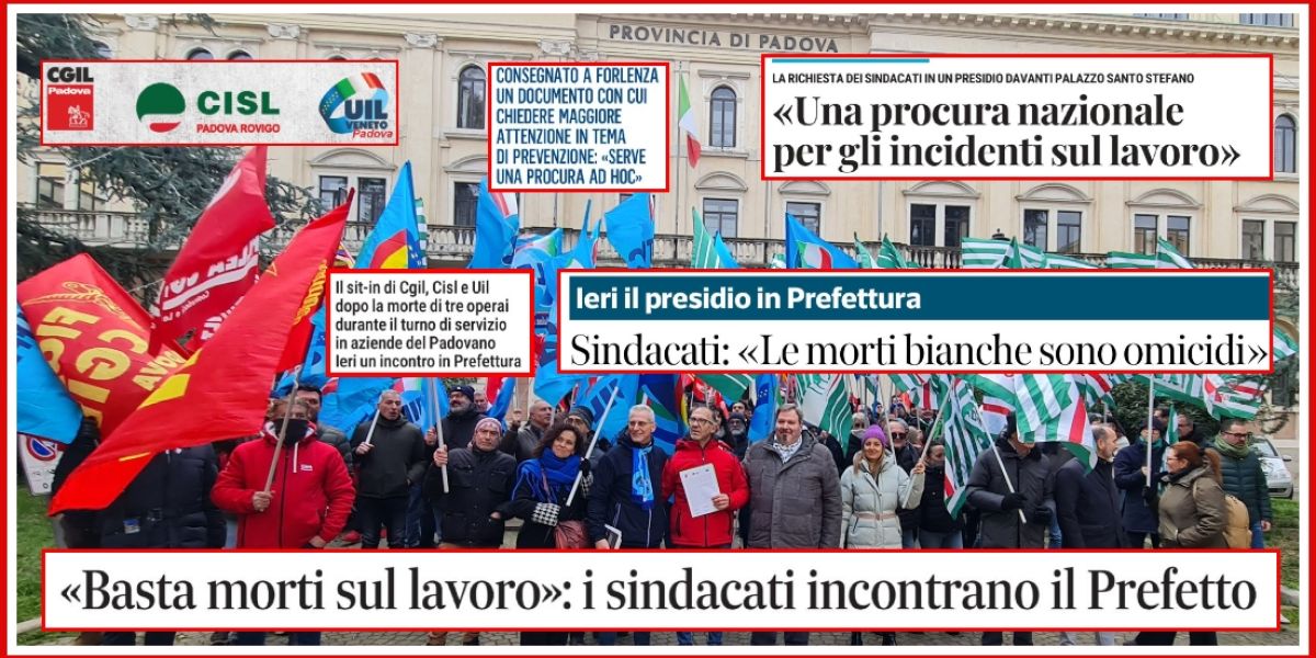 Al fianco di Badoer, hanno portato il proprio contributo Samuel Scavazzin, Segretario della Cisl Padova Rovigo, e Massimo Zanetti, Segretario della Uil di Padova. La loro presenza unitaria ha testimoniato la compattezza dei sindacati nel chiedere che la sicurezza diventi un vincolo imprescindibile per l'accesso ai bandi pubblici e che la formazione non sia ridotta a un mero adempimento burocratico. Dopo il presidio, i tre Segretari sono stati ricevuti in Prefettura per consegnare il documento programmatico, ribadendo che la mobilitazione continuerà fino a quando l'obiettivo "Zero Morti sul Lavoro" non diventerà una realtà concreta e non solo uno slogan. Perché, come ricordato in chiusura, il lavoro serve per vivere, non per morire.