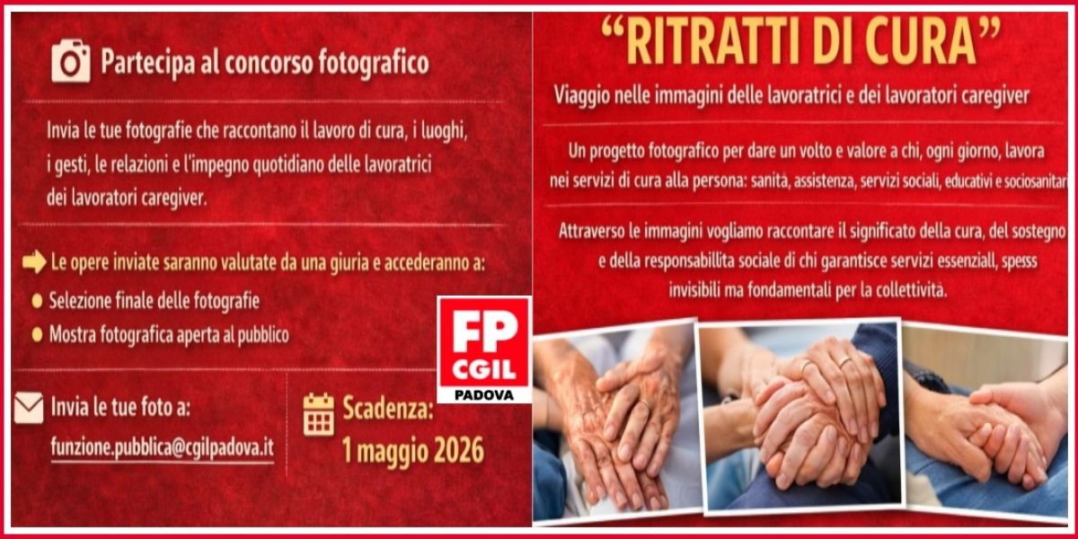 "Spesso la realtà dei caregiver è una dimensione sommersa, un impegno quotidiano e faticoso di cui l'opinione pubblica percepisce solo una minima parte. Con questa iniziativa, noi vogliamo che questa dimensione venga attraversata da un raggio di luce, che la illumini e renda possibile capirne i contorni e l’essenza". È così che Alessandra Stivali, Segretaria Generale della Fp Cgil Padova, presenta “Ritratti di cura”, un nuovo progetto fotografico che nasce con l'obiettivo di squarciare il velo di invisibilità che troppo spesso avvolge chi opera nei servizi alla persona, dalla sanità all’assistenza sociale, fino ai settori educativi e sociosanitari. Attraverso l'obiettivo della macchina fotografica, il sindacato intende documentare non solo la professionalità, ma anche il profondo valore sociale e la responsabilità di chi garantisce servizi essenziali per l'intera collettività.