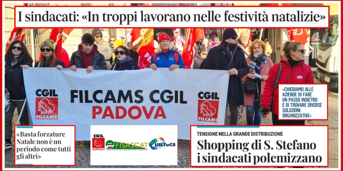Filcams Cgil Padova, Fisascat Cisl Padova e Rovigo e Uil TuCS Padova: "Basta forzature sulle aperture festive. Il Natale non è un giorno lavorativo ordinario"