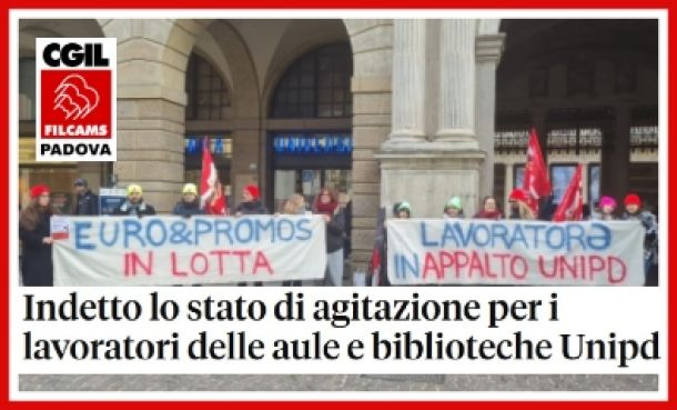 Mercoledì 11 marzo, la Filcams Cgil di Padova ha ufficialmente comunicato l’apertura dello stato di agitazione per le lavoratrici e i lavoratori impiegati negli appalti delle biblioteche e delle aule didattiche presso l’Università di Padova per conto della società Euro&Promos FM SPA.