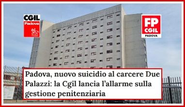 “La drammatica notizia del secondo suicidio in soli tre giorni all'interno della Casa di Reclusione Due Palazzi di Padova – dichiarano in una nota congiunta Cgil Padova e Fp Cgil Padova – scuote profondamente la comunità e mette a nudo le criticità strutturali del sistema giustizia. E quel che vediamo è una ferita aperta lasciata sanguinare da troppo tempo con gravi rischi di infezione. Una situazione che interroga le istituzioni sulla reale tenuta del modello detentivo e sul rispetto dei diritti umani fondamentali”.